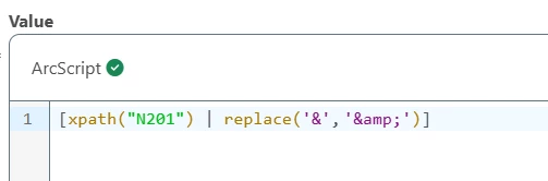 The behavior you are seeing is expected. When values are concatenated inside an XML Map node, Arc automatically decodes XML entities (for example, & becomes &). This is normal and happens any time you combine or manipulate text within the mapper.