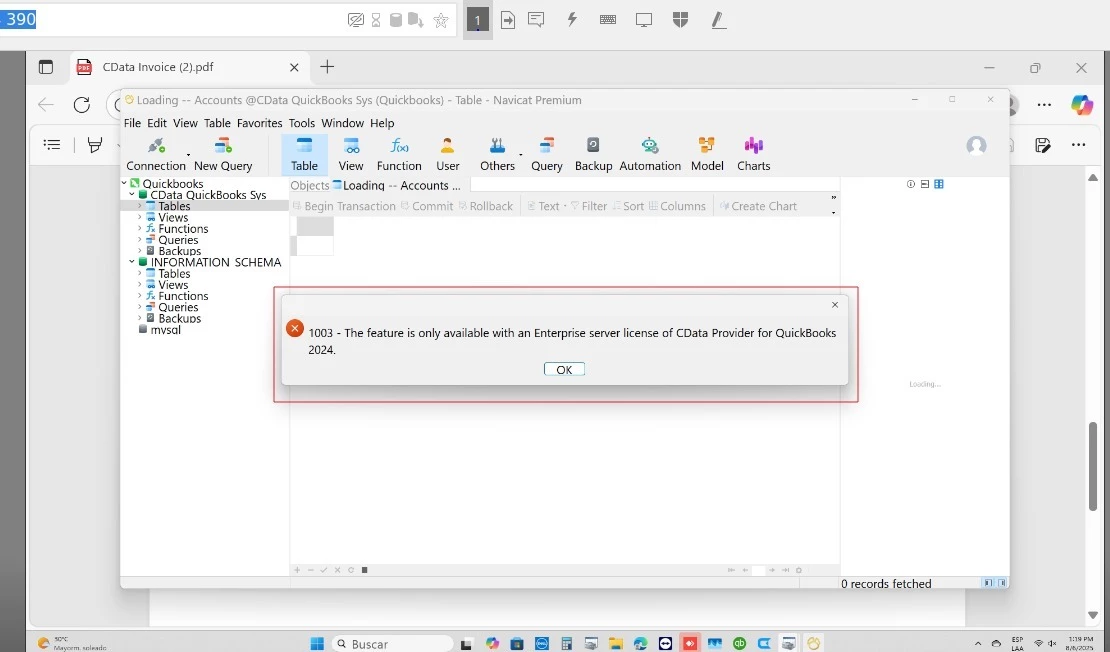 1003 - The feature is only available with an Enterprise server license of CData Provider for QuickBooks 2024.