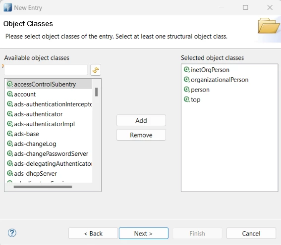 2) Choose object classes: inetOrgPerson, organizationalPerson, person, top