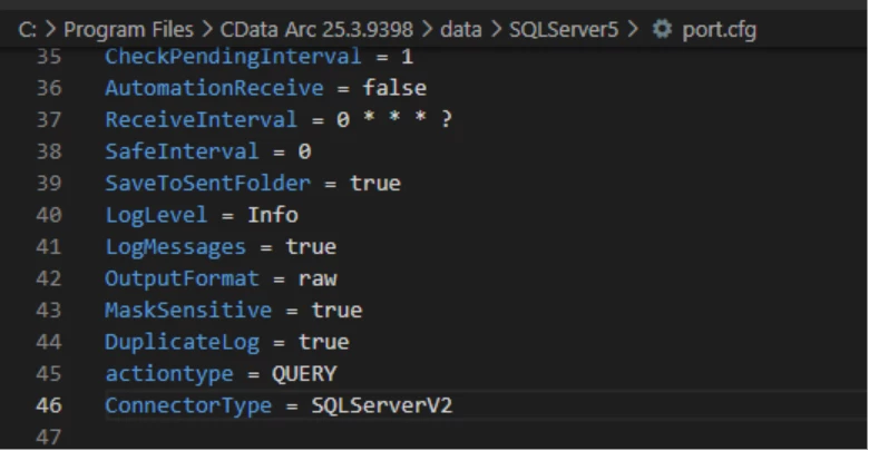 Possible solution: To attempt this, first locate the path for the SQLServer Connector V2 connector on disk for the deprecated connector and locate the port.cfg for this connector inside of the application directory (check the help documentation for your version of CData Arc to locate the path of your application directory if you are not sure).