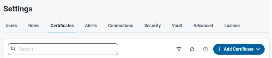 In the Settings (cogwheel)->Certificates section of the application, you can click on the +Add Certificate button to create a new certificate: