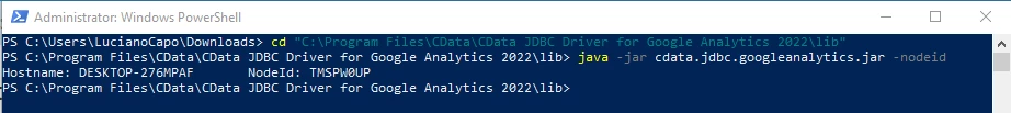 java -jar cdata.jdbc.googleanalytics.jar -nodeid