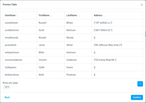 - Double check the preview of your table and click Next. The Configuration Wizard automatically imports all selected columns into the correct fields. You can also edit these fields as needed or add new ones manually outside the wizard.