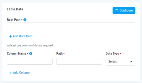 - Click Configure in the upper right of the Table Data section to open the configuration wizard.