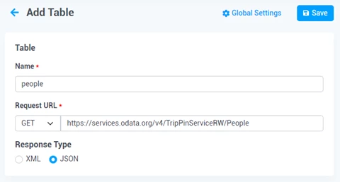 When creating tables for API Connector, it is important to remember that each table must be created individually to be listed in the Connector’s catalog. To do so, follow the steps below.