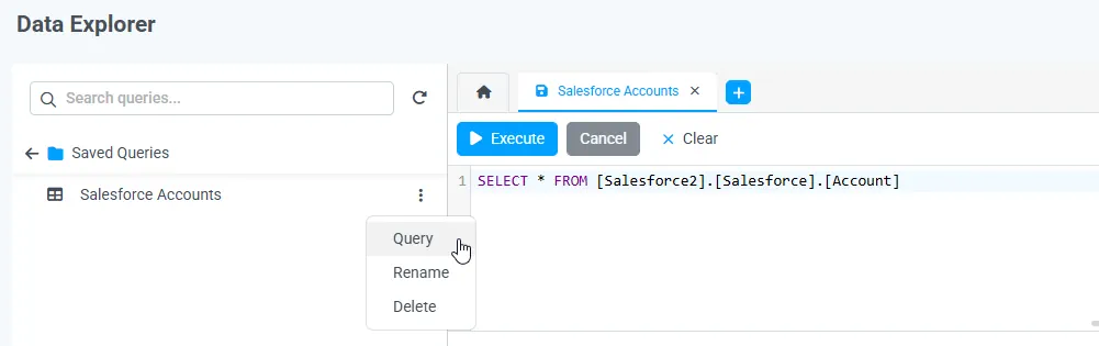 Saved Queries are SQL queries that can now be saved in the Data Explorer for instant access and reusability. The Saved Queries can also be shared across an organization. What's more, queries can be modified at a later time. Finally, multiple queries may be stored concurrently.