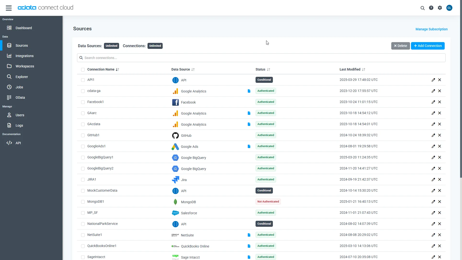 CData Connect AI is a consolidated connectivity platform that links applications to a broad ecosystem of real-time data sources through consistent, standards-compliant interfaces. CData Connect AI provides tools to access data seamlessly from any system, anywhere. Some of the key features of CData Connect AI are broad data connectivity, real-time data access, CRUD support, secure access, and comprehensive data modeling and dynamic discovery.