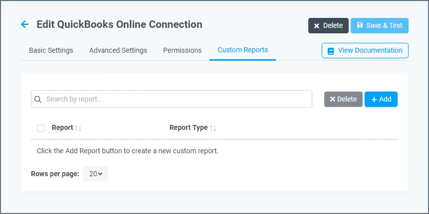 3. Now, click the Custom Reports tab and then the +Add button to add a new report.